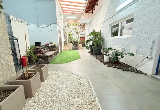 Ubicada cerca del pueblo pesquero de Las Galletas, encontramos esta propiedad de 3 dormitorios, toda en una sola planta, completamente amueblada con posibilidad de convertirla en un cuarto dormitorio y aún más espacio para un apartamento independiente. La propiedad ha sido completamente renovada con un alto nivel de calidad, con amplios espacios diáfanos, terrazas tipo jardín de diseño propio y un mobiliario impecable. Gracias a la amplitud que ofrece esta propiedad, hay suficiente espacio para construir otro apartamento adyacente a la vivienda existente.